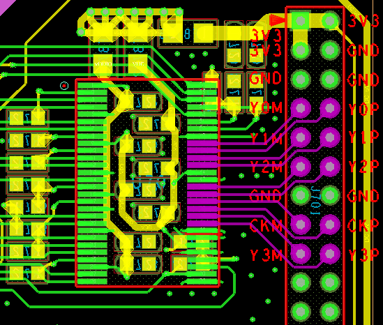 PCB,4层板,lvds信号线下无其他信号和电源线干扰,未走等长,但线很短,10mm左右,误差比较小。