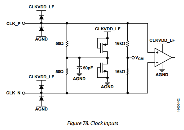 您好,FIgure32 是一种AC耦合方式,两个上拉电阻是给SYSREF输出提供偏置, 后端ADC输入端接电阻是输入匹配电阻.