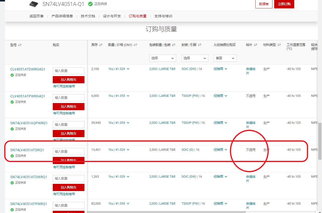 请问TI store上如何申请SN74LV4051ATDRQ1的样片?目前只找到了SN74LV4051ATDWRQ1的样片,两者封装有所不同。