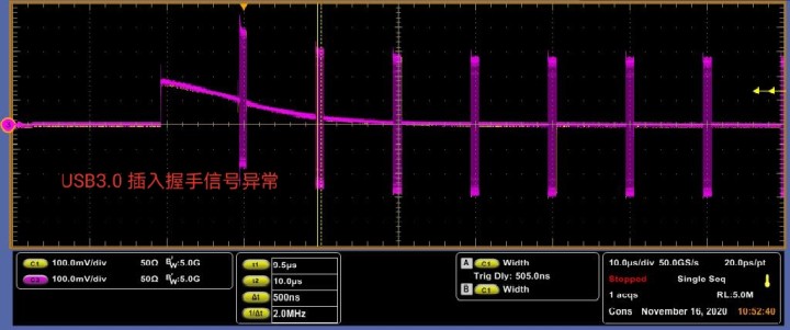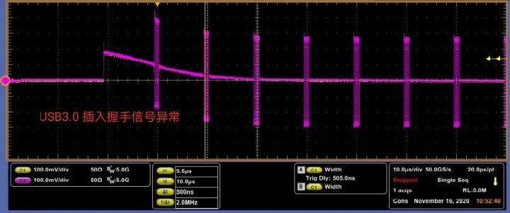 我在测试USB3.0握手过程中出现如下异常波形,请问会是那些原因造成的。