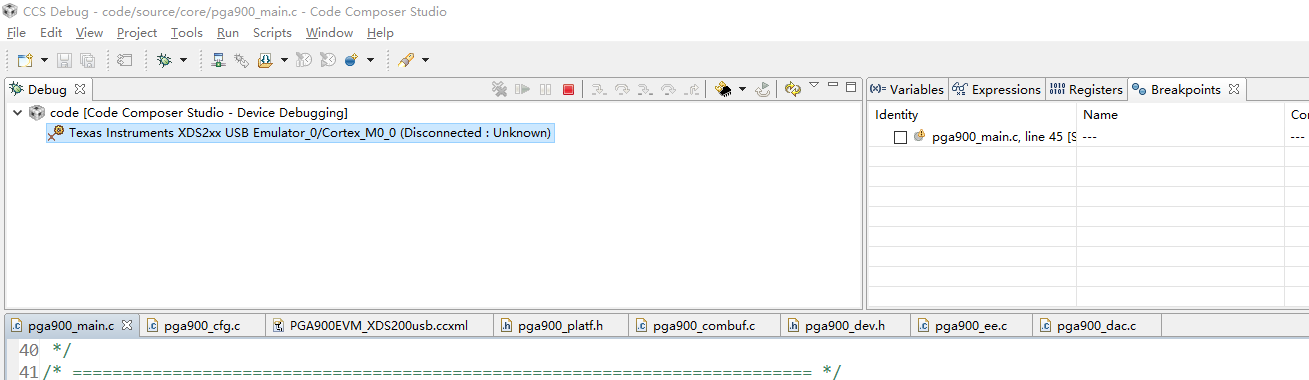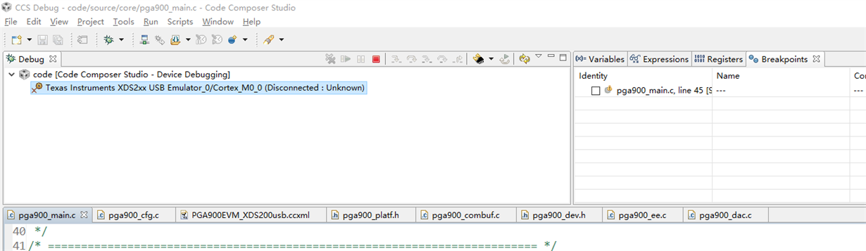 使用CCS对PGA900调试时,提示报错信息如下图所示