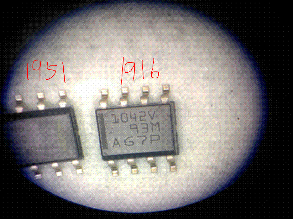 您好,我想咨询一下,下面四个图中    是不是从上边图片就能判断出,上边第一第二个图片严重管脚氧化和下边两个图1916的芯片管脚有轻微氧化或部分氧化?谢谢!