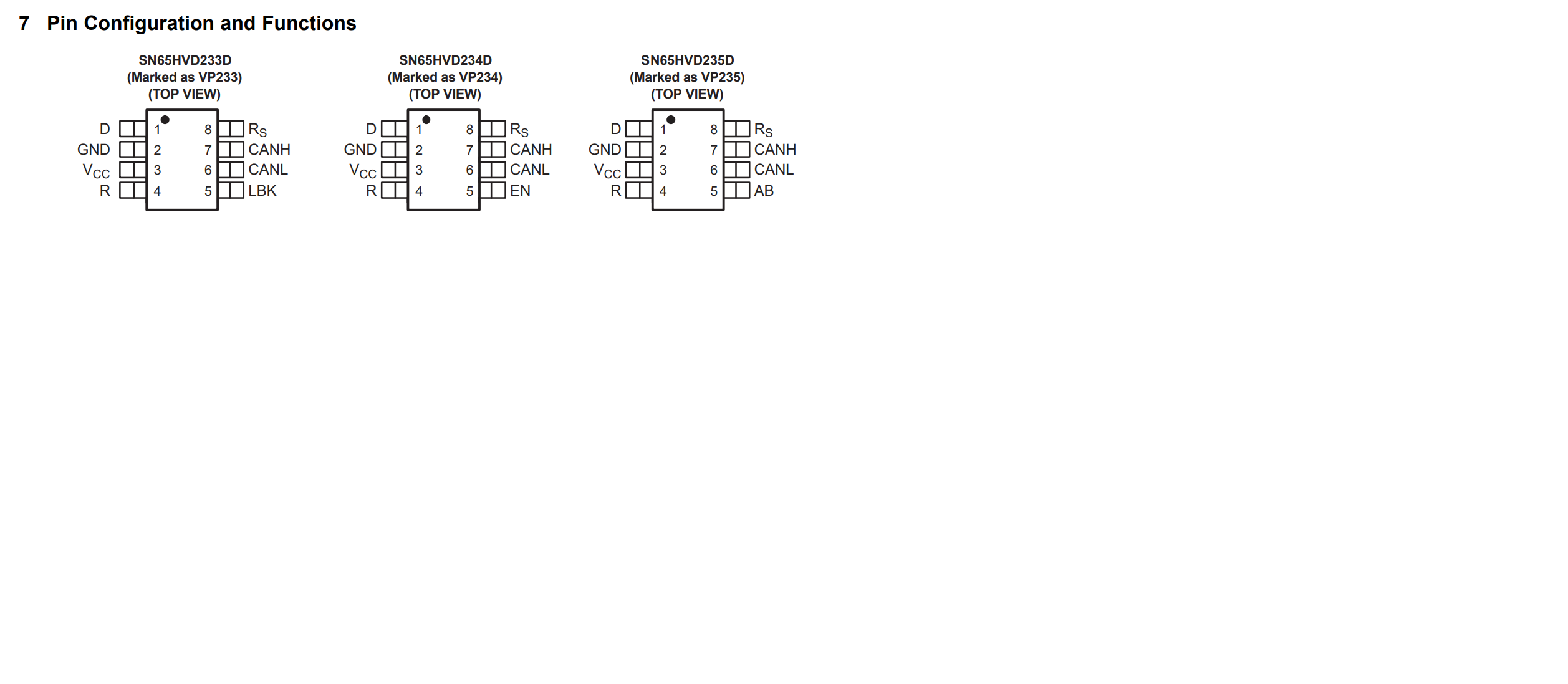 而HVD233和HVD235 没有这个功能,对应的pin5 是LBK和AB,分别是loopback和autobaud loopback 输入引脚。