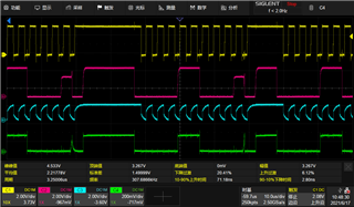 如下是异常的波形。黄色是电平转换前的SCL波形,紫色是电平转换前的SDA波形;蓝色是电平转换后的SCL波形,绿色是电平转换后的SDA波形;看看为何会出现半高的波形。IIC的上拉电阻是4.7K,改大改小都没有用。941的IIC地址是0x0C。