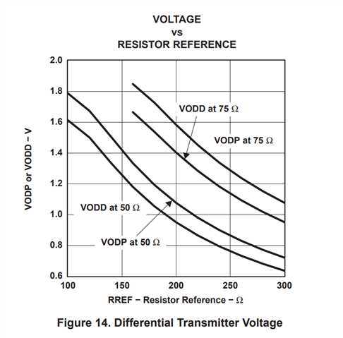 所以在您的测试中,50ohm和100ohm应该指的是Rt终端阻抗吧?下面表格中,REF没有推荐50ohm值。但是在50ohm特征阻抗下,REF=100ohm时, Vodp=1.8V,Vodd=1.6V。