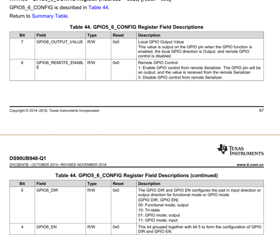 用ub948的gpio5-9想读取外部电平状态,根据手册将其配置为input模式,写对应寄存器为3