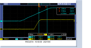 您好,您的意思是VDD12 先于VDDIO/VDD33上电1.16ms了是吧?目前测试下来当电压稳定时,给CLK信号或者输入,输出端波形都是正常的吗? 因为我们一般推荐客户是按照数据手册中的上电时序,这也是经过无数次实验得到的最佳性能。关于948的上电时序,之前有客户反映过,输出不正常的现象,我看美国工程师给的意见是降低各个电压之间的延迟,因为工艺的不同,那么多个电压上电时序不同会造成漏电流的产生作用到输出或其他信号上。