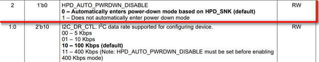 我们的设计是FPGA --> TMDS181 --> HDMI Connector,使用TMDS181配置为I2C模式。寄存器配了0x09值为0x02,0x0A值为0x32,其他寄存器都为默认值,视频无输出,读取出来的寄存器0x20的值为0x8A(bit7=1,power down模式),问题: