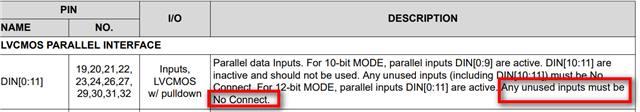 目前在使用使用DS90UB933做摄像头模组,只是用了8位,想了解的是首位对齐后(0-7),其余几位可以悬空还是接地?