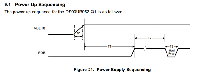 从DS90UB953-Q1这颗芯片的spec来看,上电过程有两个图:"9.1 Power-Up Sequencing" 和 "9.1.1 System Initialization"