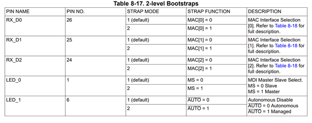 DP83TG720R-Q1: MAC地址与RGMII模式选择,上拉电阻
