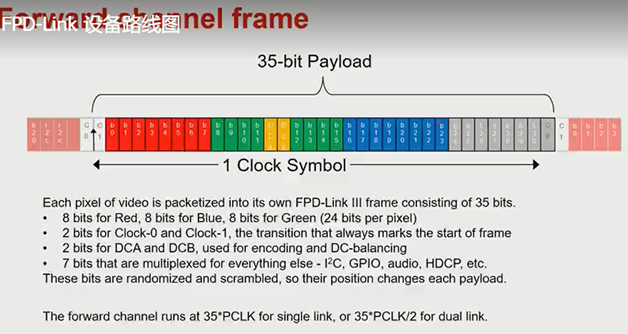 2.从一个网站v.qq.com/.../v0962tn9gj6.html, 视频里有对前向传输的数据的说明,在一个clock会传输35bit。