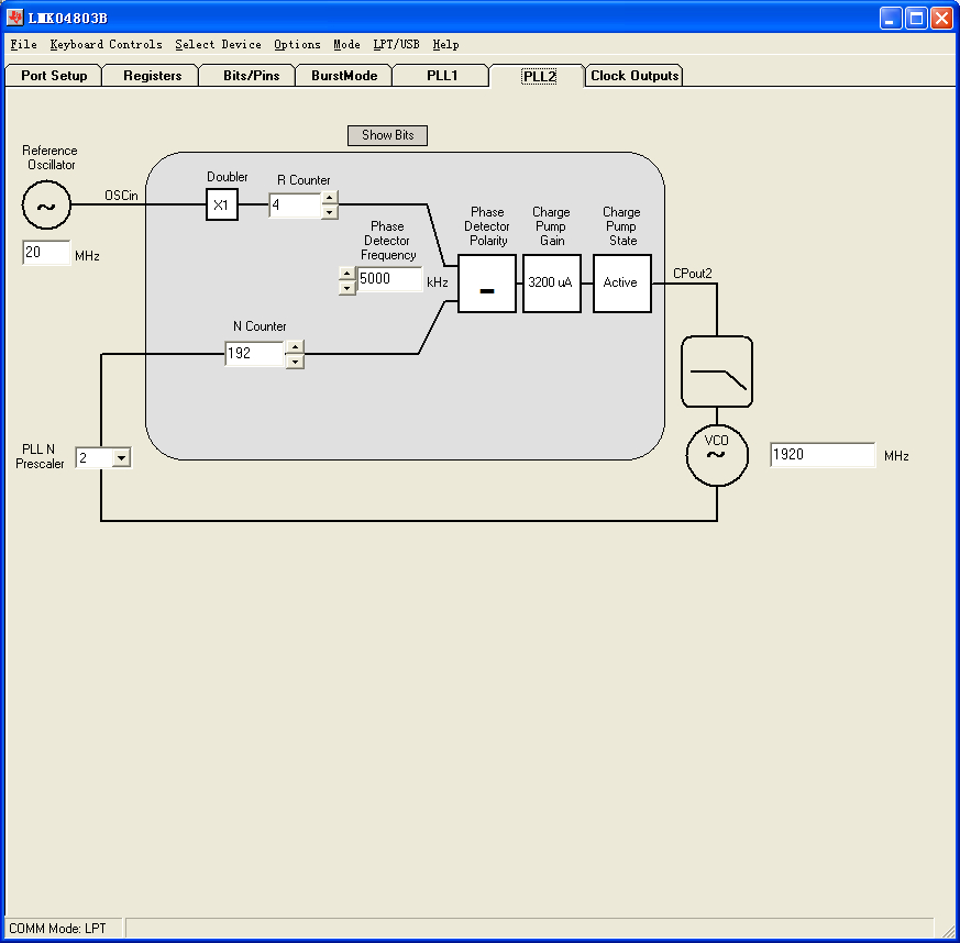 我之前一直是uwire接口通讯不是很正常,后来在LE/DATA/CLK中间串接个电阻通讯就可以了,之后PLL2也锁定了。不知道为啥必须加电阻