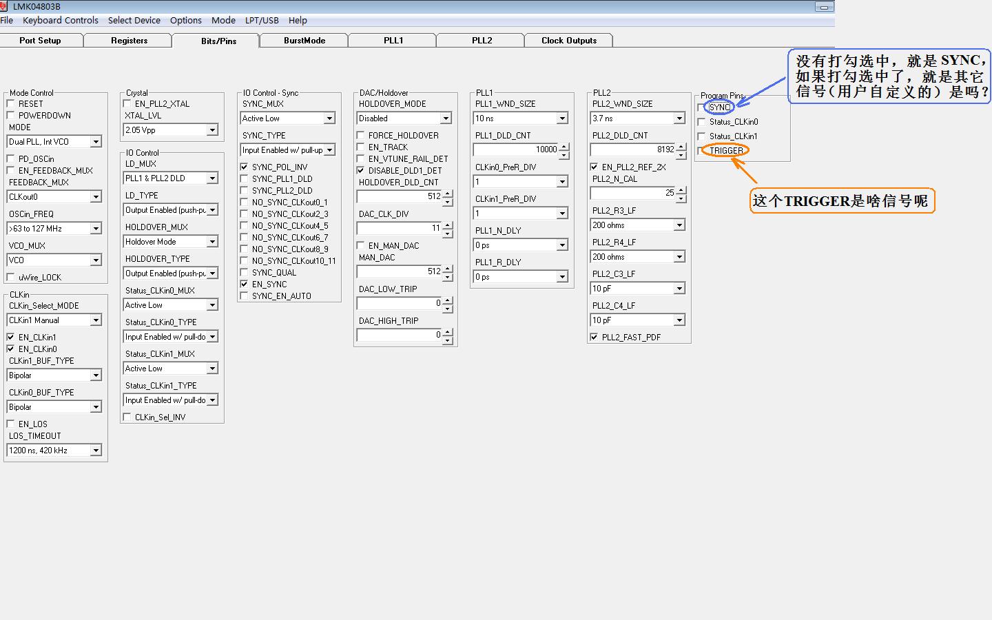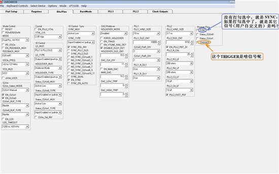 没有打勾就证明没有选中这项功能,也就是不使用这些引脚进行编程,trigger引脚是用来触发晶振的,你可以参考介绍code loader的文档,里面详细介绍了如何使用以及每个功能的含义: