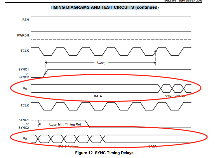 1,当发送完1026个同步信号,拉低SYNC信号,是不是当前的DIN0~DIN9立刻就被锁定,当TCLK_R/F=1时,数据在TCLK上升沿就被锁定,然后自动发送出去了,