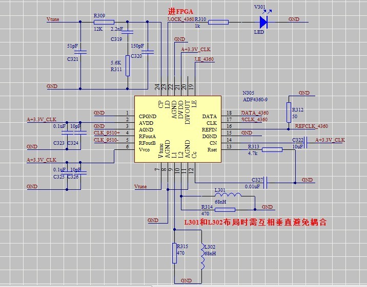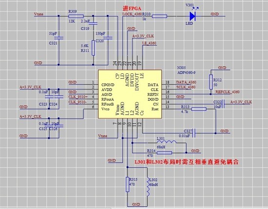 2、计算得出L1和L2是20nH(VCO范围:390M-500M),但最后我调试完成时,电感值是15nH(VCO范围:450M-570M)。而且L1和L2总是需要调整,直接用个15nH的不行,需要从20nH往下调,一直到15nH,VCO才能锁出420M。