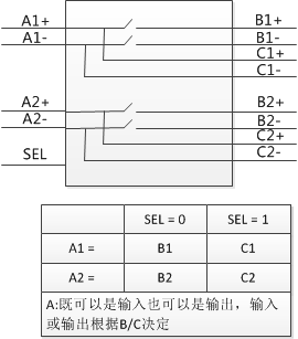 我的应用是这样,A这边连到连接器上,B接输入(LVDS),C接输出(LVDS),A通过SEL控制是输入或者输出,
