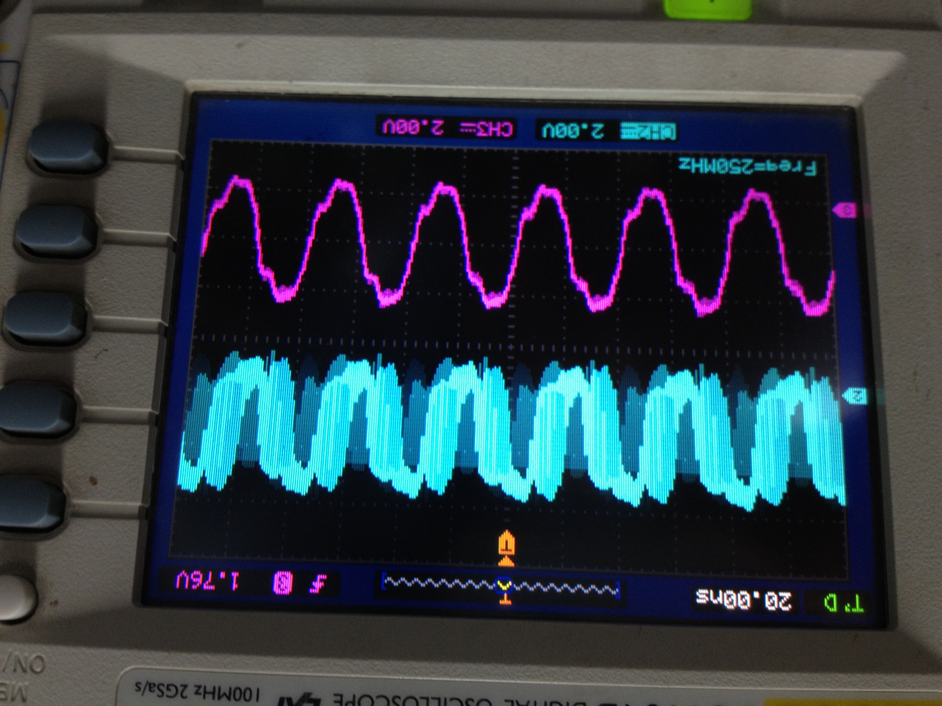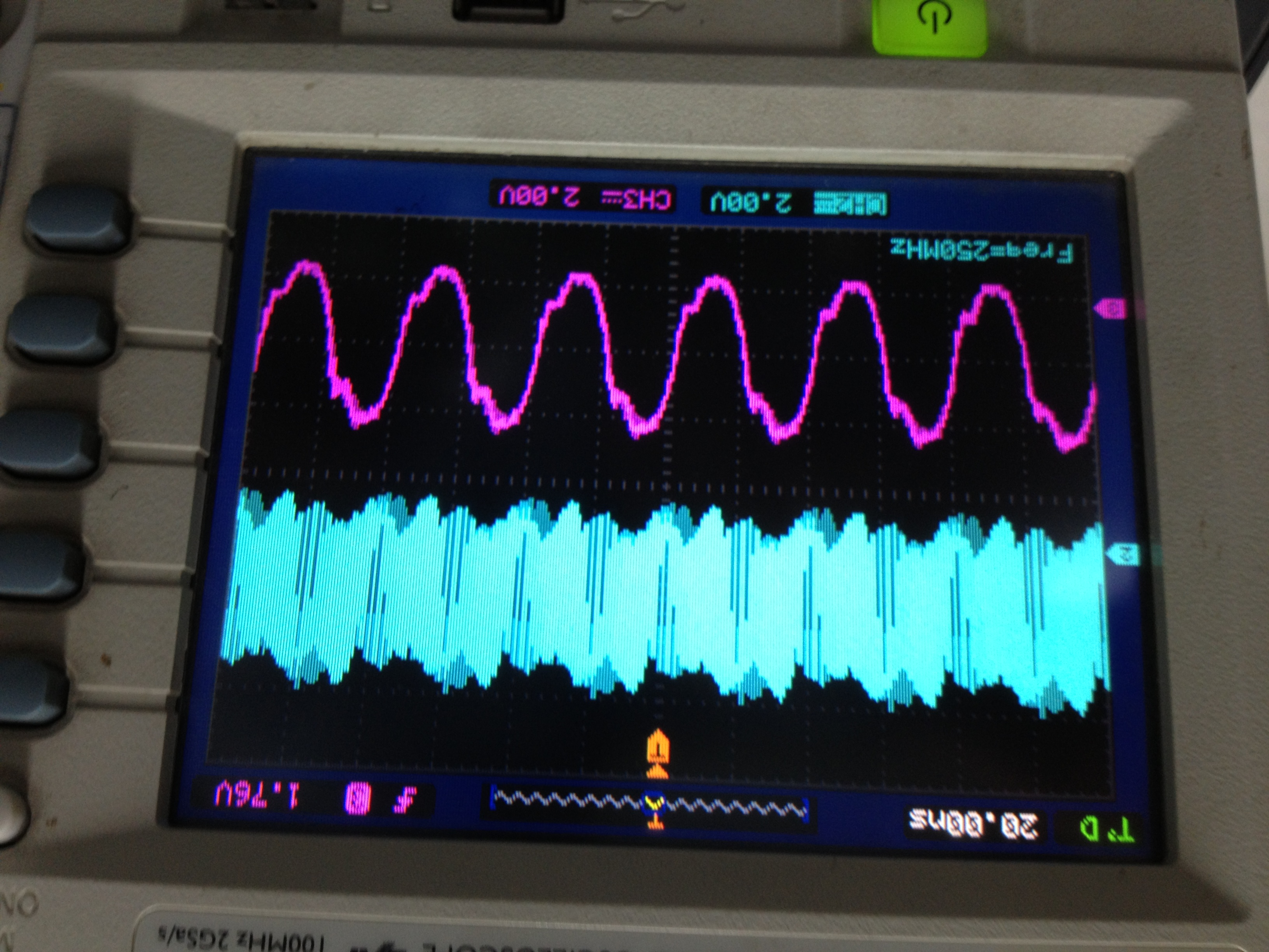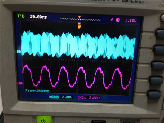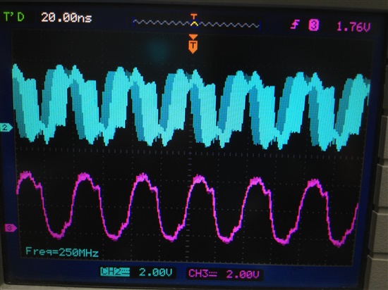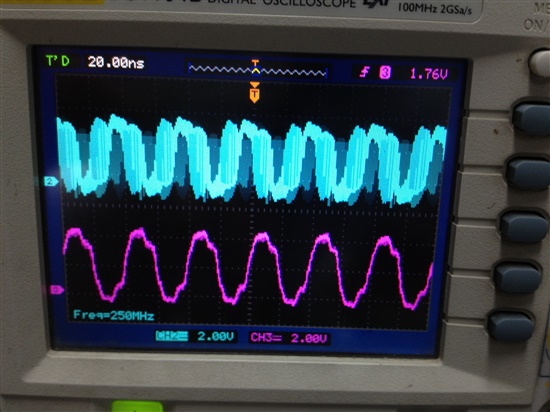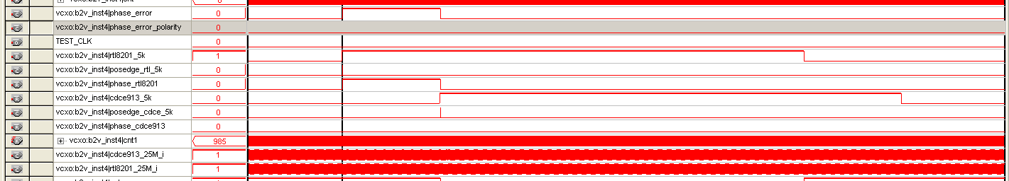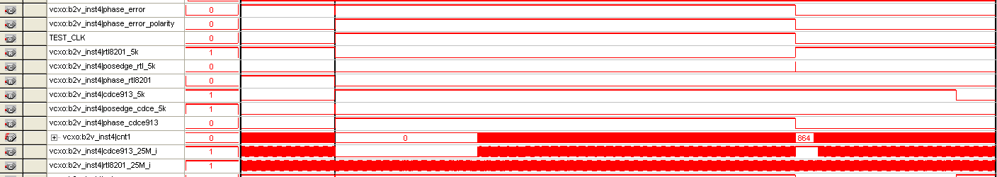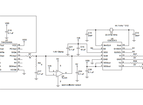 大家好,我用cdce913芯片,XTAl用的是25M的4角晶振。通过FPGA用IIC配置Y1输出的也是25M。然后把Y1输出的25M,和另一个RTL8201芯片输出的25M时钟,同时输入FPGA,通过FPGA将这两个时钟分频成10K的时钟。下图一,是CDCE913的参考电路,我只是用FPGA替换了74HC4046A。两个分频后的时钟相比较用的是图二的方法。但是配置完后用示波器测量发现从CDCE913出来的时钟25M不是很规则,很多毛刺,而且根本没有和RTL8201芯片输出的25M时钟锁相。