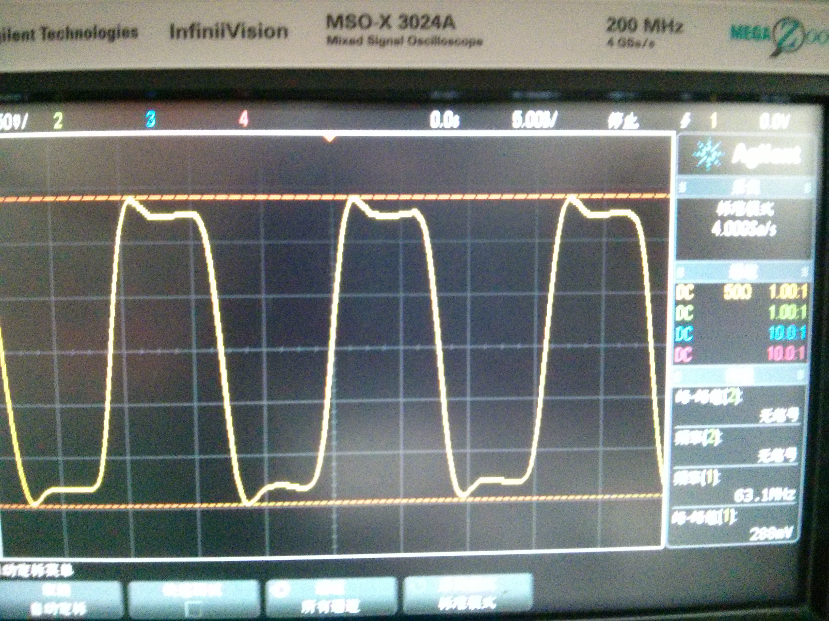 LMX2581在输出60MHZ~120MHZ时输出的波形出现了饱和,如下图所示,求问这个问题要如何解决,是电路电容电阻参数选的不对还是内部寄存器配置错误,谢谢!