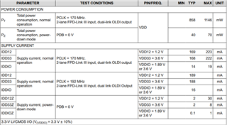 power down模式下,此时输出三态,PLL disable,此时电流消耗最小,可以看下面电气参数表格,针对948正常工作normal operation条件下以及power down模式下的电流大小。