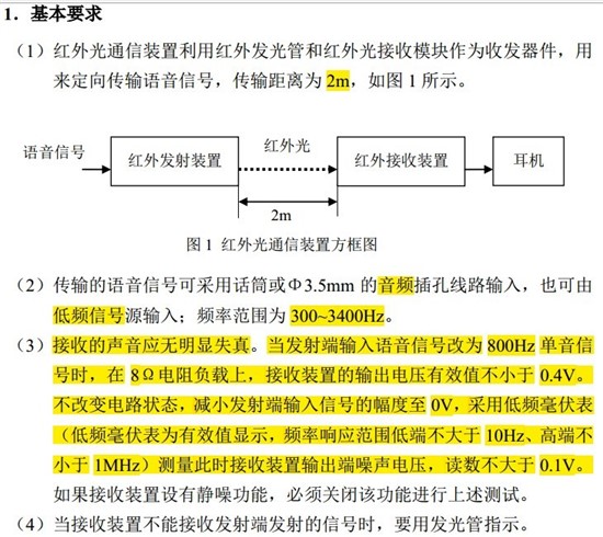 我们采用2FSK调制(开关法:音频数字信号控制模拟开关)。最终调制后的信号通过红外光发射二极管发射。