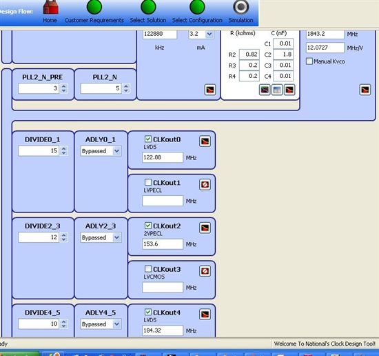 我们板子中选择时钟芯片CDCE62005作为主时钟,输入为:61.44MHz,希望输出为:122.88MHz、153.6MHz、和184.32MHz。