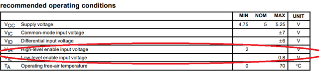 MC3486的手册介绍A-B小于0.2V输出为高,是写错了吗。另外使能电压范围没有,是多少呢。谢谢