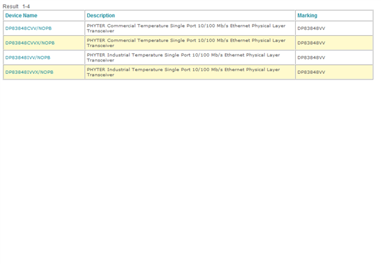DP83848带V后缀的唯一一款是DP83848VYB:http://www.ti.com/lit/ds/symlink/dp83848vyb.pdf