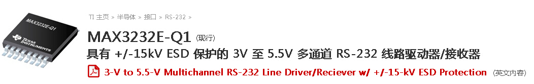 MAX3232E-Q1 - 具有 +/-15kV ESD 保护的 3V 至 5.5V 多通道 RS-232 线路驱动器/接收器