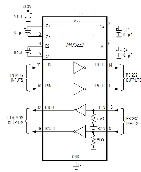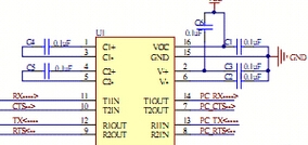 MAX3232等收发器是采用专有的低压差发送器输出级,利用双电荷泵在3.0V至5.5V电源供电时能够实现真正的RS-232性能,max3232供电电压5v或3.3V,耗电0.3mA,外接4个0.1uF电容!