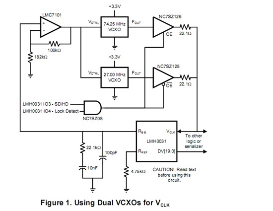 如果用VCXO来给LMH0031提供低抖动时钟模式,需要设置寄存器Video Control 0, 此外你提到的,