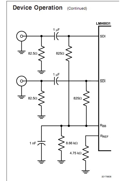 关于SDI输入是否还需要加偏置问题。你可以参考手册page6, 有对SDI信号Vcm和Vin的描述,