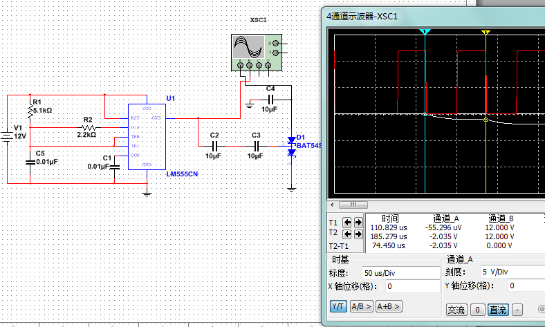 我使用555定时器搭建的多谐振荡电路,按照TI公司LM555CN的datasheet示例实现占空比为50%的方波输出。仿真图如图所示。实际555输出端接4421功率CMOS作功率放大(仿真库中没有,所以没用上),再实现+12V转-12V的开关电源形式。但是我在焊接PCB电路元件后,测试时却发现555输出的0~+12V方波有严重的过冲现象,幅度可达5V。这使得实际搭建的开关电源电路无法实现-12V转换,而是输出-18V。我想问的是,为什么555产生方波会产生过冲?如何降低这种过冲影响?谢谢!
