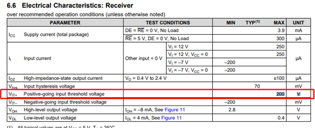 SN65LBC184DRG4相关手册上的第五页,参数VIT+单位是否应该是mV,而不是V。