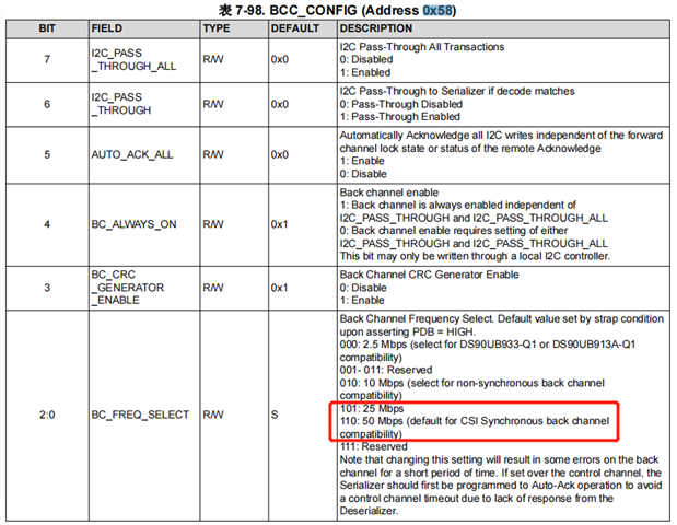 您好,如果通过0x58配置back channel的速率为25Mbps的话,那么相应的line rate从4Gbps变为2Gbps。