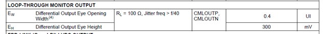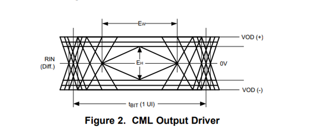您好,FPD link的deserializer端输入内部集成了自适应均衡器,CMLOUT是监测和评估接收端的信号质量的,用差分碳棒在CMLOUT两端测量眼图,通过眼图张开度宽度和眼图张开度高度判断串行数据流的信号完整性。