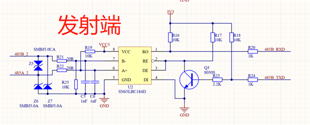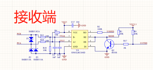 发射端和接收端两个模块放置位置非常近,一米左右,在这么近的距离下出现了通讯中断的情况,我们在接收端芯片的A、B脚并上了120欧姆的终端电阻,通讯恢复。但是在使用一段时间后,会再出现通讯不上的情况,再次取消120欧姆电阻,通讯又恢复。