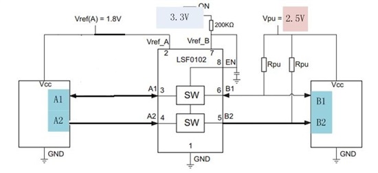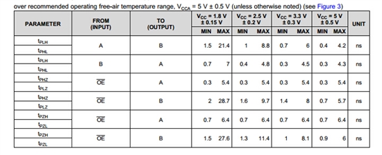 哦 不好意思,是的SN74LVC8T245不能支持200Mhz的速度,不过我看了下1.8V转2.5V的8位电平转换器件中,貌似没有能够支持400MHz这么大速度的呢。像AVC系列的传输延迟时间低,SN74AVCH8T245: