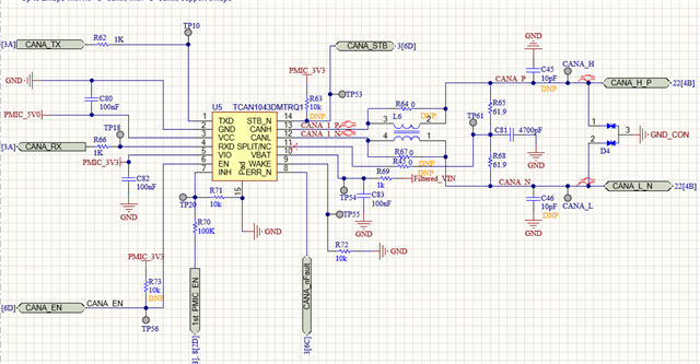 我在使用TCAN1043时遇到一个问题,我们的产品使用了INH功能来控制一级DCDC的使能,