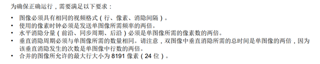 视频源的话我目前就是把原复制模式显示的内容像素时钟频率变成了原来的两倍,水平消隐分量扩大了两倍,行像素扩大了两倍,垂直消隐的同步周期没有变化,把垂直消隐的前后沿增大让垂直消隐的和变成了原来的二倍