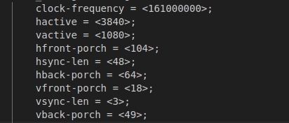 是的,两个都是黑屏。我只是单纯的把设备树中的数值做了一些修改,把像素时钟频率变成了原来的两倍,水平消隐分量扩大了两倍,行像素扩大了两倍,垂直消隐的同步周期没有变化,把垂直消隐的前后沿增大让垂直消隐的和变成了原来的二倍。