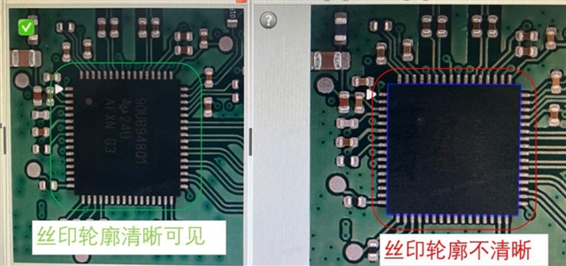 DS90UB948TNKDRQ1  丝印模糊,一些比较清楚,一些很模糊,模糊的地方AOI都无法识别,如图所示