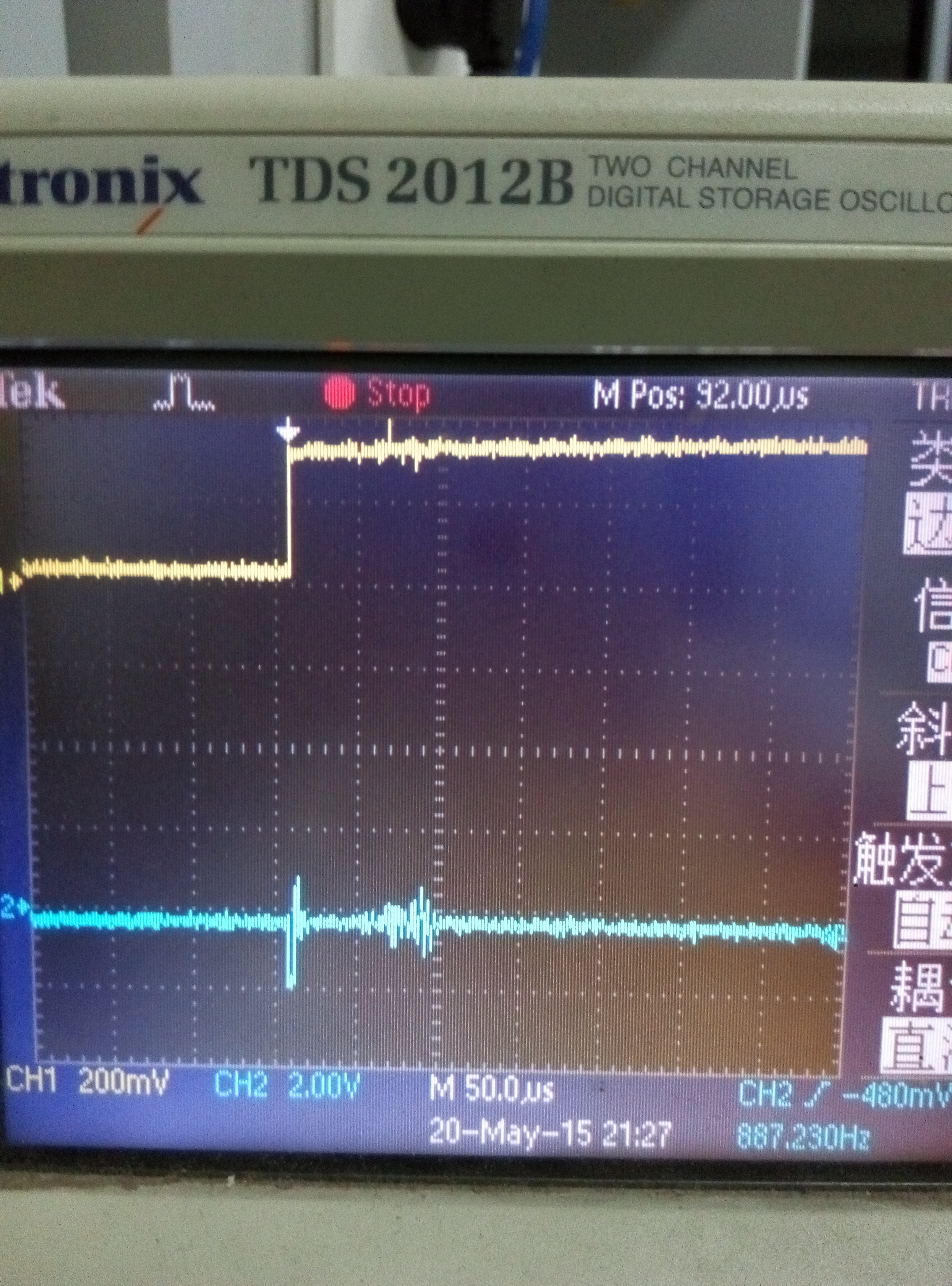 给光电二极管阵列一个反向偏置,然后再通过模拟开关选通某一个光电二极管然后再进行信号调理。在切换通道的时候会有约100us的抖动,波形见附件图,怎么样能去除这个抖动对信号的影响。(ps:需要50us左右采集一次信号)