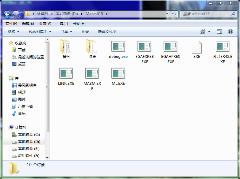 首先你去下载站下载并安装DOSBOX,然后在D盘建一个Masm615文件夹并将如图