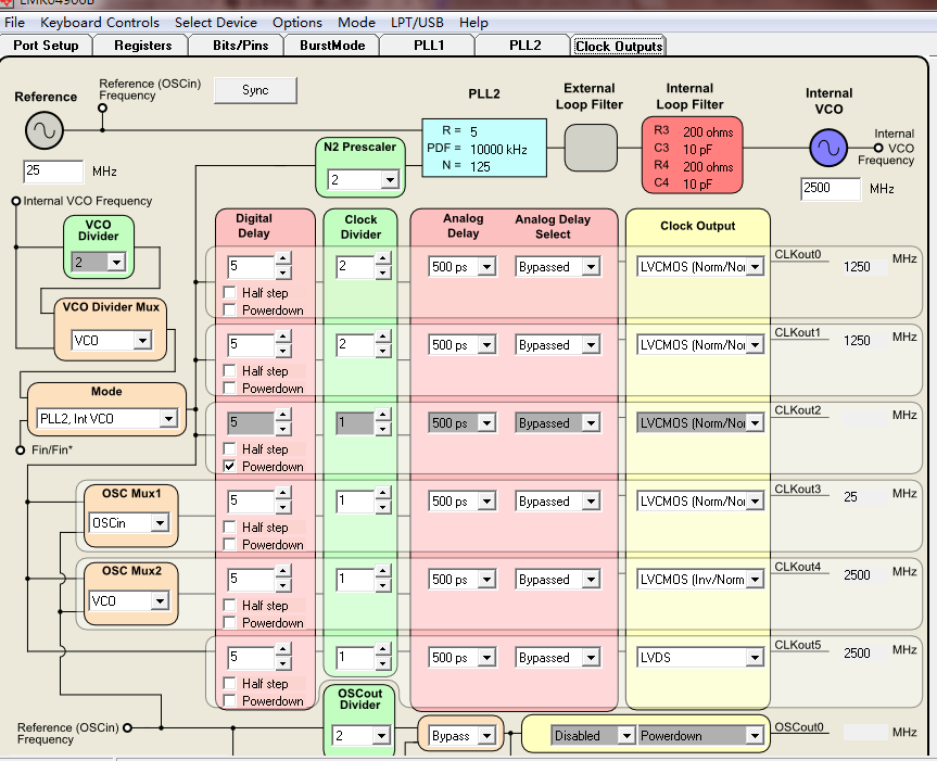 LMK04906在单PLL工作模式下,当设置输出为1.25G LVCMOS时幅度为1dBm左右,当设置为2.5GHz LVDS输出时幅度为-14dBm,当设置为2.5GHz LVCMOS输出时为-30dBm,求帮助。