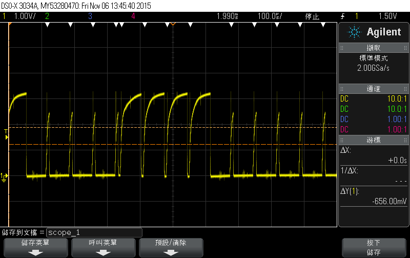 下图是畸变后的信号波形,在每一信号的1v开始有一个拉升,然后信号开始下降,然后缓慢上升
