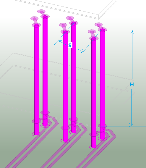 图1:高速差分过孔产生串扰的情况(H>100mil, S=31.5mil )