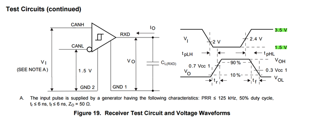 1.5V参考电平是测试期间CANL的直流电压。在测试期间,VI(CANH)上的信号将从1.5V切换到3.5V。