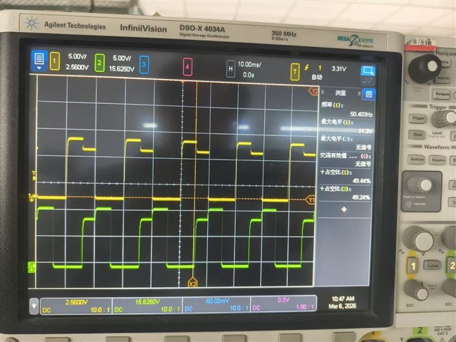 你好,这是我们实测的波形图,麻烦帮我们看一下,第一张是典型故障现象,第二张有输出但是不稳定