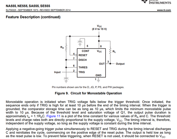 单稳态电路可以考虑NE555.4.5V~16V的供电电压,输入0~VCC范围。